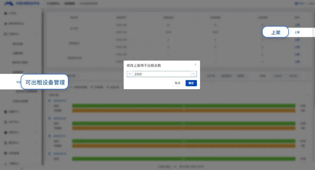 (资源上架、设备创收页面示意)