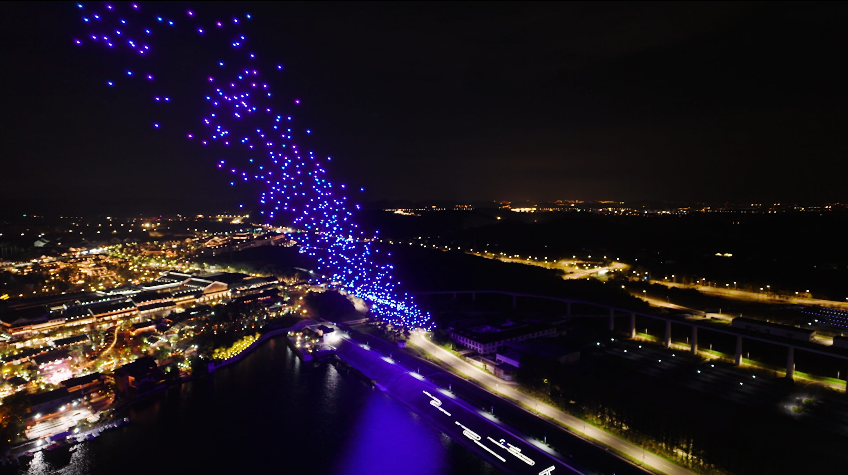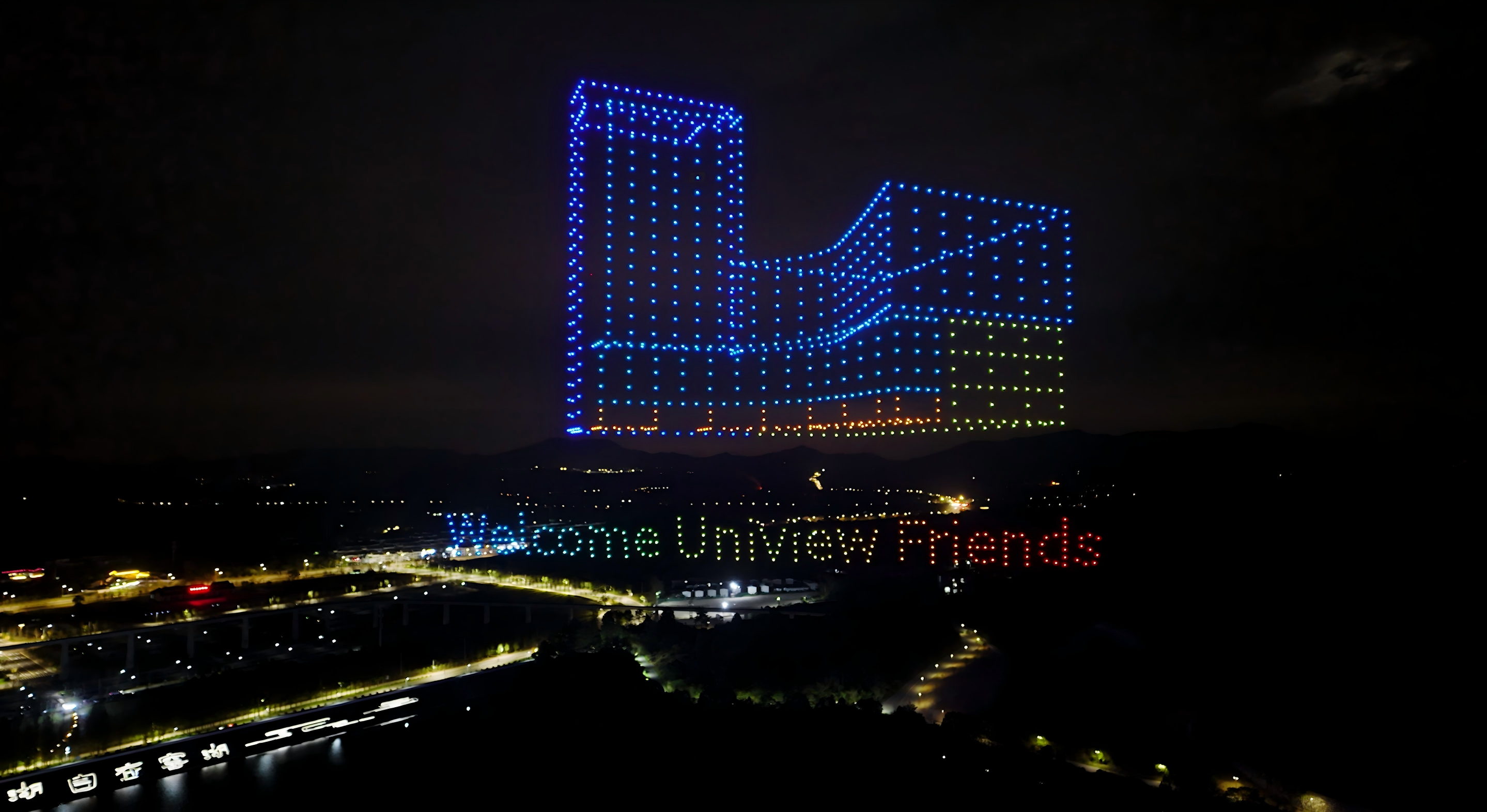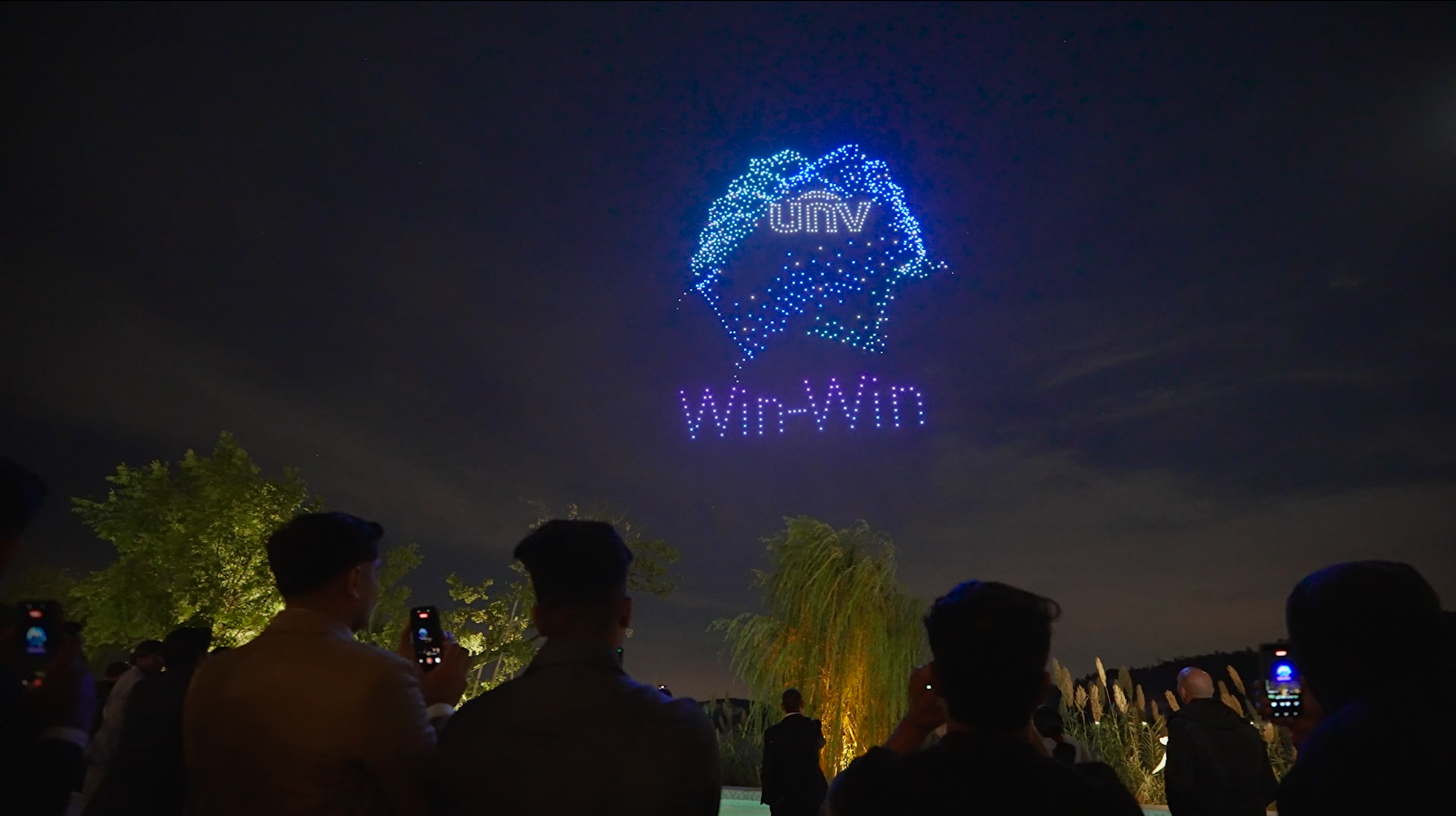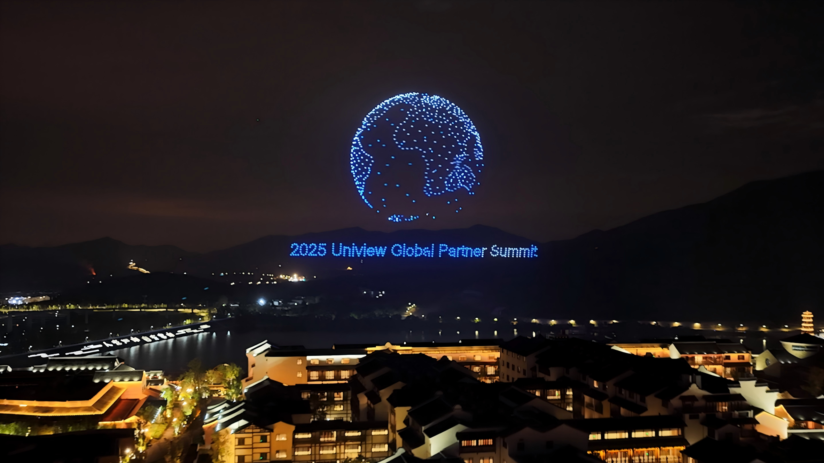 在近日圆满落幕的宇视科技2025年全球合作伙伴大会上,千架无人机以天为幕,以光为笔,呈现了一场美轮美奂的精彩表演。不仅点亮了浙江窑湖小镇的夜空,更以独特的方式,展现了科技与艺术融合的无限可能。